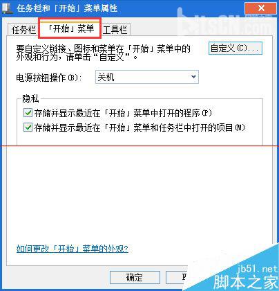 3、在弹出的菜单中找到“开始菜单”标签并点击。