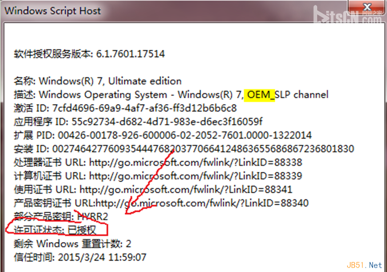 2、在弹出的窗口里,观察第二行,标注的位置显示了该系统的授权方式