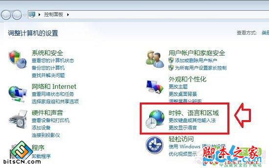 二、进入控制面板之后,我们再进入“时钟、语言和区域”设置,如下图所示: