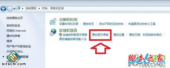 三、进入电脑语言设置后,我们再点击进入“更改显示语言”,如下图所示: