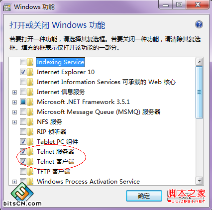 4. 找到telnet客户端,把这2项都勾选上,然后确定就可以了