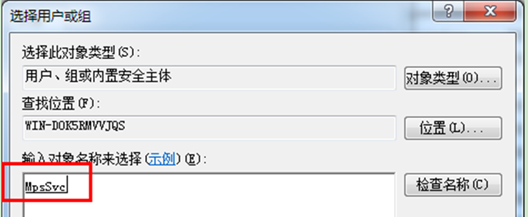 5.添加好MpsSvc 用户后,返回到权限设置页面,将MpsSvc设置完全控制权限即可。