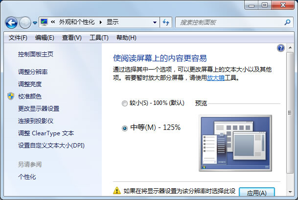 二、其次我们进行文本大小的修改操作,例如我们可以选择为“中等-125%”,紧接着再把文字修改为中等尺寸,最后再使用鼠标点击应用按钮。