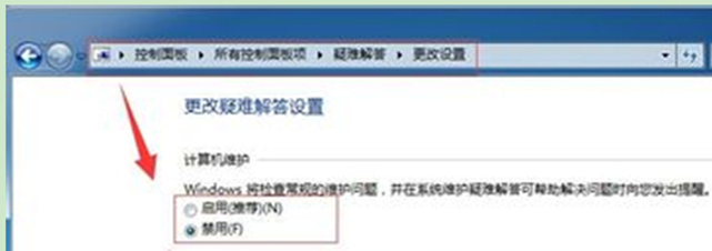 3、在“计算机维护”模块中选择禁用,点击确定便可解决自动清除的问题。