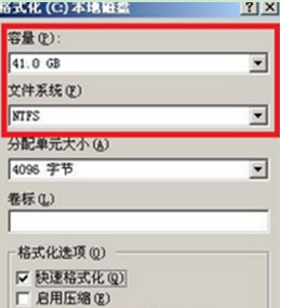 3、进入PE之后,将C盘格式化为NTFS,(C盘大小设置为30G以上)。